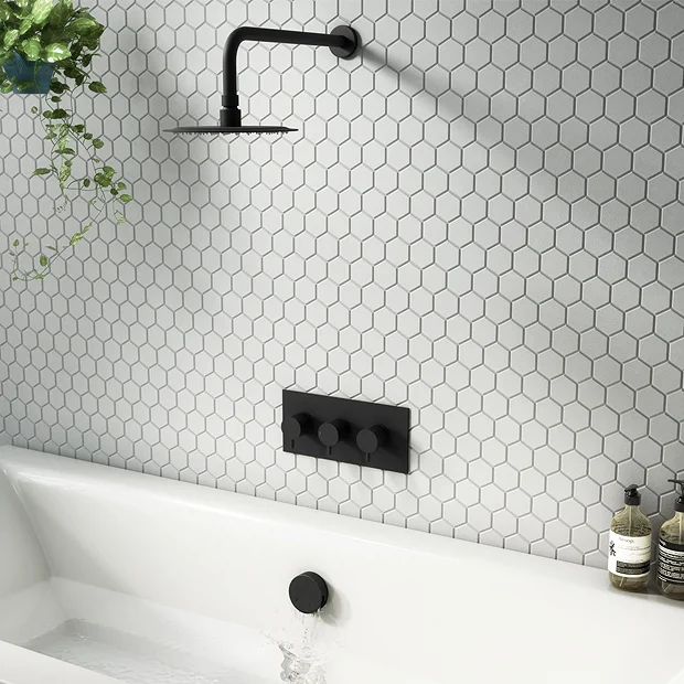 - Requires additional side valves or shower valve (not included).