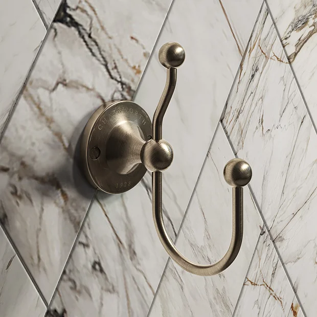 Chatsworth 1928 Brushed Antique Brass Effect Traditional Double Robe Hook