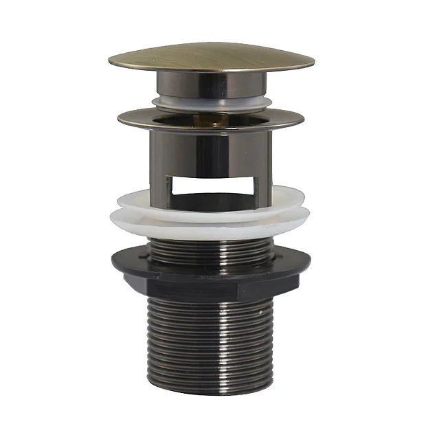 The Chatsworth Antique Brass slotted click clack basin waste is constructed from durable material with a stylish smooth antique effect finish. Waste is controlled by a simple push button mechanism for that finishing touch in your bathroom and provides excellent performance. Designed for use with basins with an overflow. Combine with one of our matching Chatsworth Antique Brass Taps (sold separately) for a perfectly harmonious traditional bathroom.