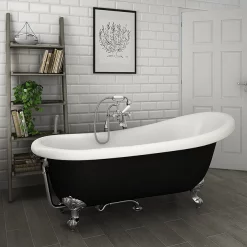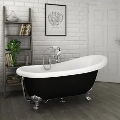 The exterior of the bath has a amazing pewter lustre finish. This luxury double ended roll top bath comes complete with matching skirt.