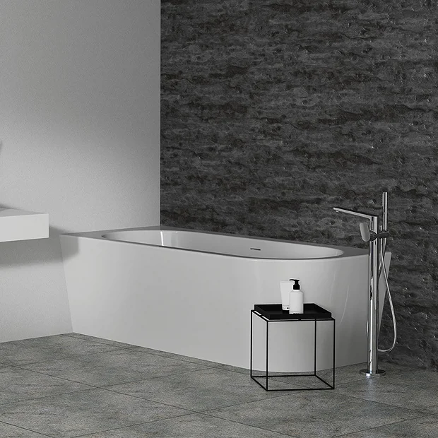 Modern asymmetric luxury bath, the soft curves, geometric oval shape and rimmed edges gives this Adapto a stand-out bold look. Made from high-quality white gloss acrylic that holds its warmth, so you can lie back and relax in the bubbles for even longer. Features a sleek slotted overflow and includes a chrome clicker waste.