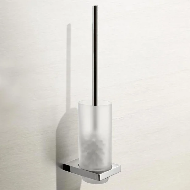 With geometric lines and a modern design, Keuco Edition 11 accessories offers a rich selection for attractive bathroom furnishing. This wall mounted toilet brush and holder comes in a stylish yet functional design and includes a spare brush head. Made from premium materials with a durable chrome finish and frosted glass insert.