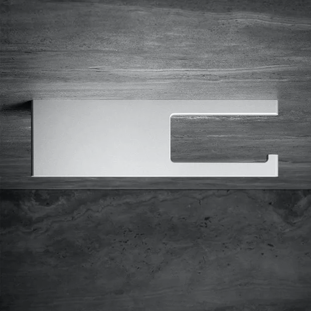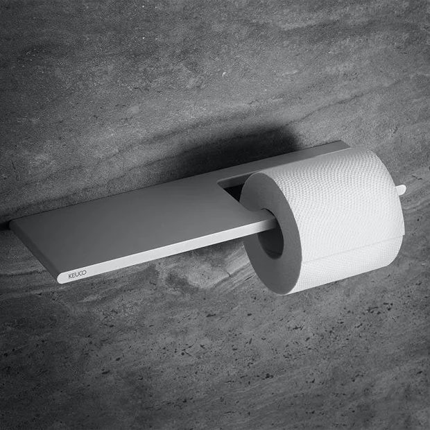 Beautifully styled, the Edition 400 accessory collection from Keuco brings practical functionality and elegance. This toilet roll holder with shelf comes in a stylish yet functional design and features concealed fixings. Made from premium materials with an aluminium silver anodized finish.