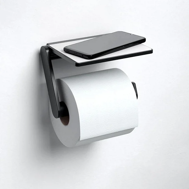 The Keuco Plan accessory range offers a wide collection of practical products to choose from. This toilet roll holder with shelf comes in a stylish yet functional design and features hidden fixing points. Made from premium materials with a sleek matt black finish.