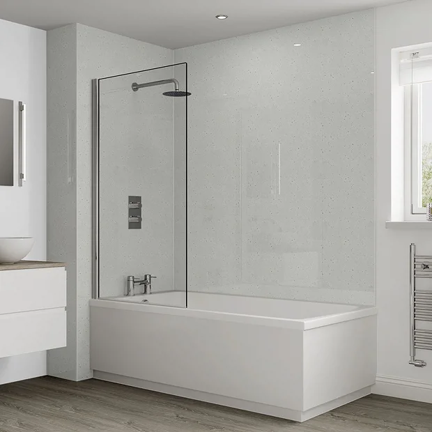 This White Snow wall panel features specks of glitter to create a timeless and stunning look. Panels are supplied with Hydrolock tongued and grooved edges for easy installation and a seamless look. An Unlipped option is also available.