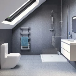 If you love the appearance of traditional tiles but are tired of living with the maintenance of grout, the Multipanel Tile Collection is what you have been waiting for. Using the very latest in manufacturing technology, Multipanel etch a beautiful 2.5mm pale grey grout line into the Tile Collection decors, creating a beautiful tile effect with laser precision. Easy installation is maintained and unlike traditional tiles where rigorous cleaning is required, these tile effect panels are simple to clean and easy to maintain. Panels in the Tile Collection feature a 580mm x 400mm size tile, which has been designed to deliver maximum aesthetic impact across any bathroom size.