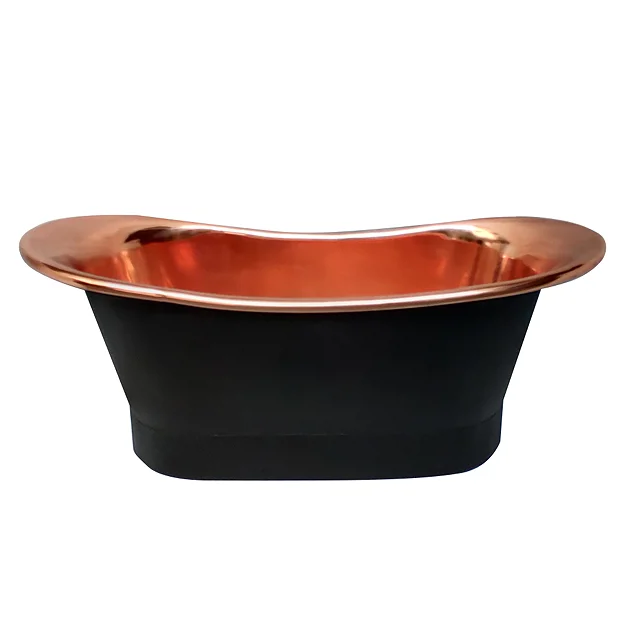 The luxury Trafalgar 1700 classic roll top double ended slipper bath, made using traditional metal working techniques, features a stunning matt black painted finish with a polished copper inner. This quality handcrafted bath provides the perfect focal point in both traditional and contemporary bathrooms, if you want to make a genuine statement with your bath design, then choose from our luxury matt black/copper bath collection. Designed for use with wall mounted or floor mounted free-standing bath taps.