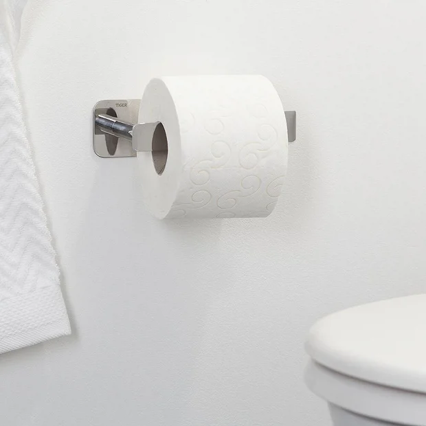 This toilet roll holder from the Tiger Colar range is stylish and completely on-trend. The holder is robust, but thanks to its simplicity in design, it has an open and friendly design. The Colar toilet roll holder can be mounted in its entirety with the supplied strong, double-sided 3M tape.