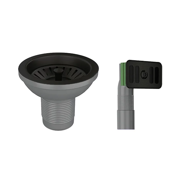 This basket strainer waste with rectangular overflow in Matt Black finish is suitable for most standard kitchen sinks with an overflow outlet. Consists of a waste kit with flexible overflow.
