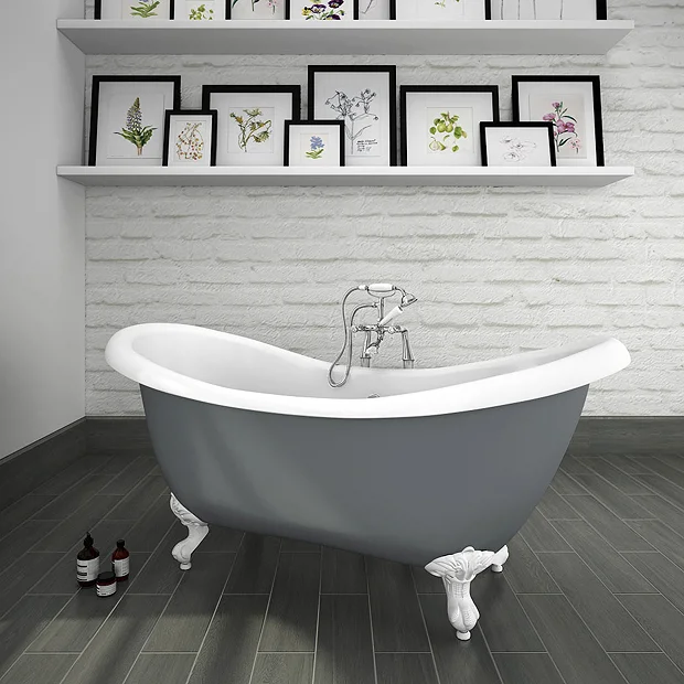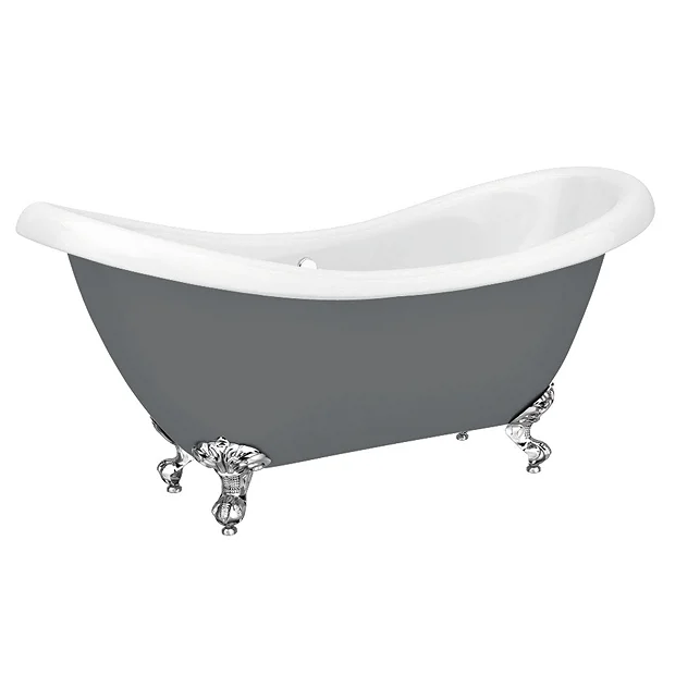 Earl Gloss Grey Double Ended Roll Top Slipper Bath w. Ball + Claw Leg Set 1750mm