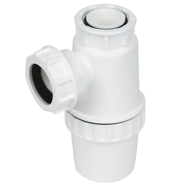 - A quality white plastic bottle trap from manufacturer Floplast.