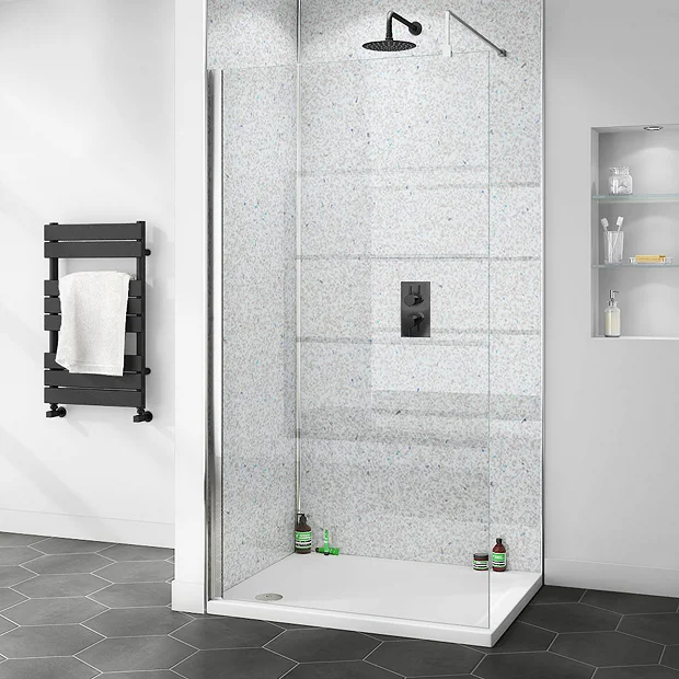 Transform your shower with the Orion White Diamond Galaxy PVC Shower Wall Panel. This shower panel is speckled with mirrored flecks that sparkle and glisten. It’s a great alternative to tiles since it’s easy to wipe down, warm to the touch and economical to install. Position the white shower panel within a shower enclosure or instantly create a shower area using just two panels for an eye catching effect. Because it’s lightweight, it’s simple to lift, handle and fit. Team with the equally featherweight Aurora Stone Square Shower Tray for an effortless installation.